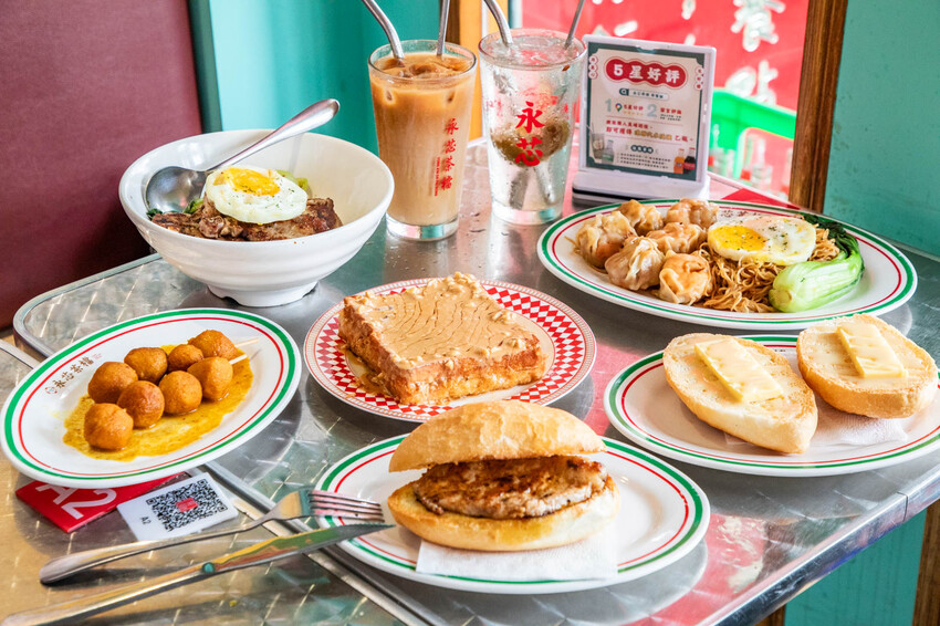 說到環境「永芯茶檔茶餐廳」在2022年初的時候,從原本的忠勤街搬到了不遠處的成章四街這個新店面。現在的用餐環境變得超大超舒服,裝潢就是走一個濃濃的港式茶餐廳懷舊復古風,從牆壁、地板、桌椅到餐具,連小細節都弄得很到位,用餐時間一樣是人潮滿滿喔。