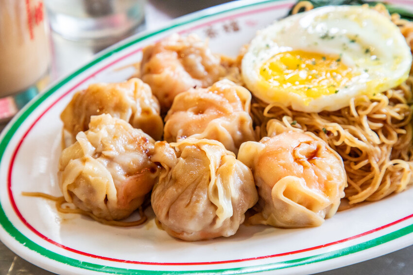 這種細緻的雲吞皮更能襯托出裡面鮮蝦內餡的彈性跟飽足口感啦。我搭配的廣生麵就是用麵粉加上雞蛋做成的雞蛋麵,它不只很容易吸附湯汁,本身吃起來就很有味道而且很有彈性,一口麵一口雲吞,真的超有飽足感的。