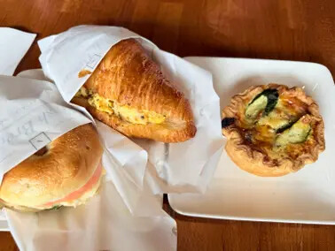 松露嫩蛋可頌、燻龜蛋沙拉貝果、菇菇雞肉鹹派