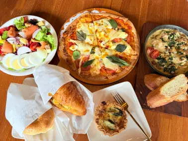楸鮭沙拉、瑪格麗特披薩、奶油菠菜嫩雞