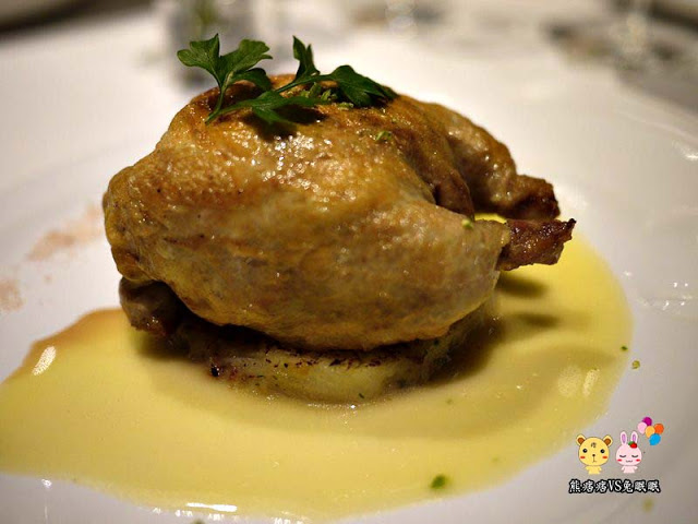 | 法式烤春雞鑲鄉村內餡搭檸檬奶油醬/Roasted Spring Chicken with Country Vegetables and Lemon Butter |