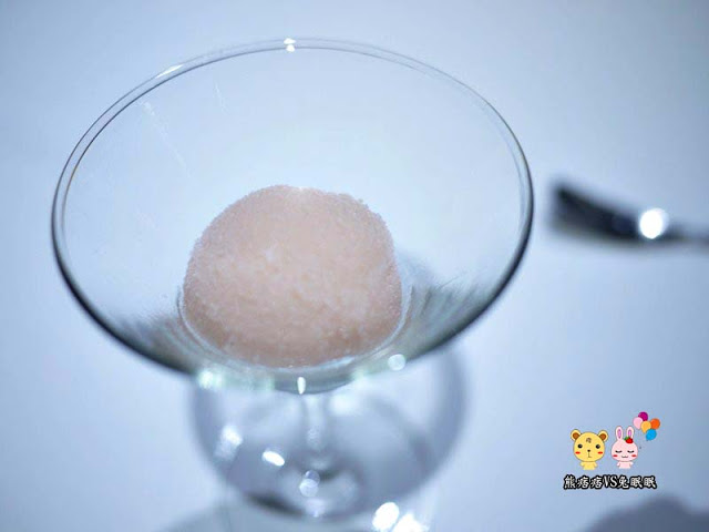 這是搭配白蘆筍才有的菜色,菜名我忘記了......!白蘆筍吃起來甜甜帶點苦味,肉質超細嫩!右邊這個更是精華所在,由下往上分別是燉飯、蛋與梅酒弄出來的氣泡,一口挖下時,中間的金黃色蛋黃緩緩流出,整個燉飯本身的味道很濃郁,夾帶了蛋香後更是令人一口接著一口,我超喜歡這道菜的,吃過後甚至覺得他比魚的主菜更吸引人。
