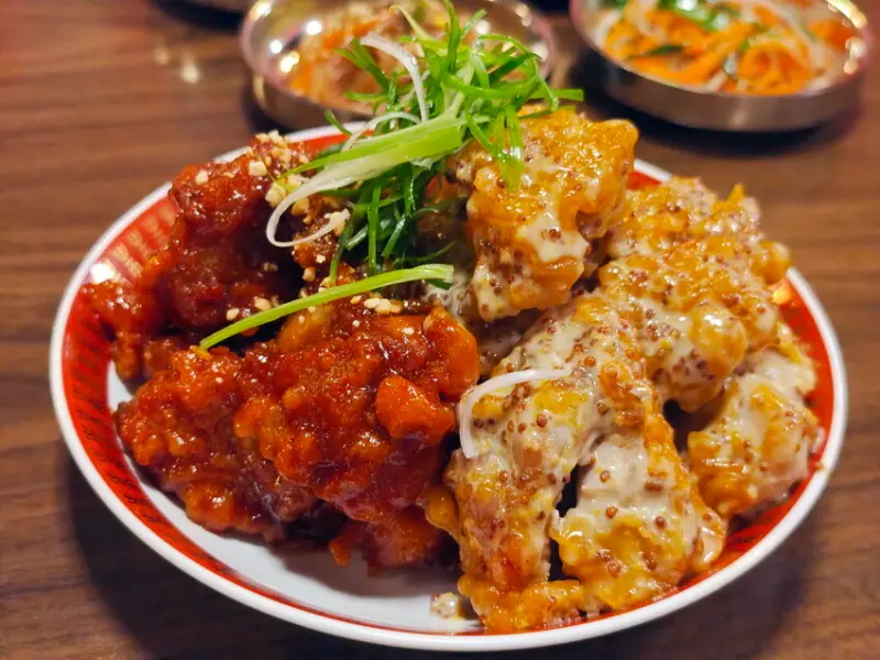 每次去韓國料理店,必點韓式炸雞,一上桌,那炸雞的香氣從鼻孔直衝頭頂,酥脆的外皮裹著濃郁的醬汁,一口咬下,先是聽見那「喀滋」的脆響,接著是多汁的雞肉在嘴中爆發,甜中帶辣、鹹香交錯,醬汁緊緊包裹著每一寸雞肉,不油膩,卻香氣四溢。那種平衡得恰到好處的味道,讓人根本停不下嘴。