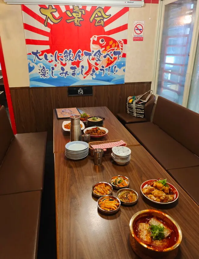 一群好友相約美味的韓式料理店裡,桌上滿滿的烤五花肉、辣炒年糕、炸雞、海鮮煎餅、韓式紫蘇雞湯,配上冰涼的燒酒和啤酒,歡笑聲不斷,大家舉起酒杯乾杯,彷彿在過節。食物的香氣在空氣中飄散,燒酒一入口,辣味刺激著味蕾,也讓心情跟著高漲。大家邊吃邊聊,分享著近況與回憶,那種熱騰騰、微醺的快樂,像是一場屬於友情的盛宴,在暖黃色燈光下閃閃發亮。這不只是吃飯,更是一場說走就走的幸福聚會。