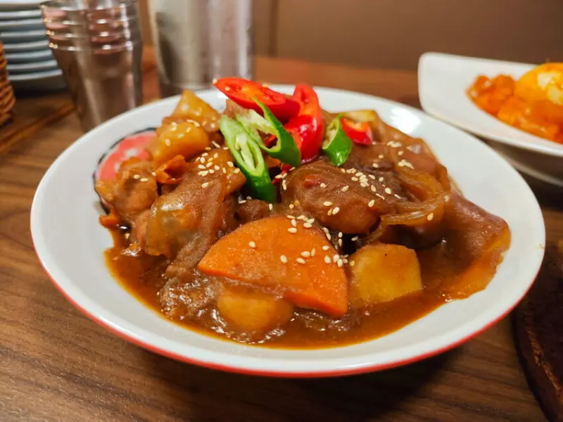 雞肉入味軟嫩,馬鈴薯鬆軟綿密,那充滿甜鹹微辣的醬汁完美滲入每個食材中,喜歡韓濟蔘雞湯專門店這道燉煮得軟嫩的馬鈴薯與雞肉。