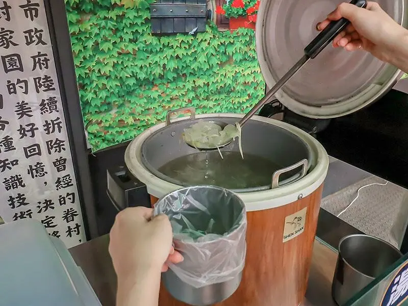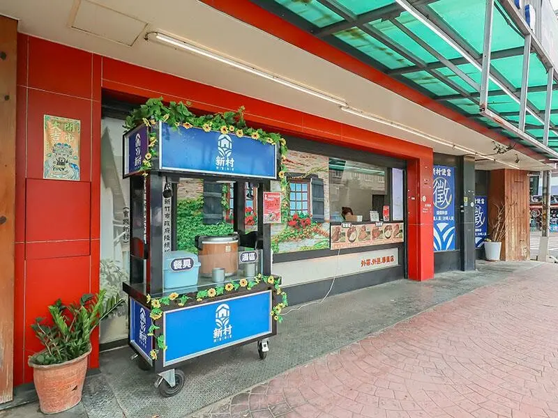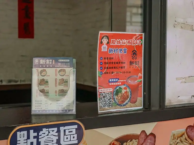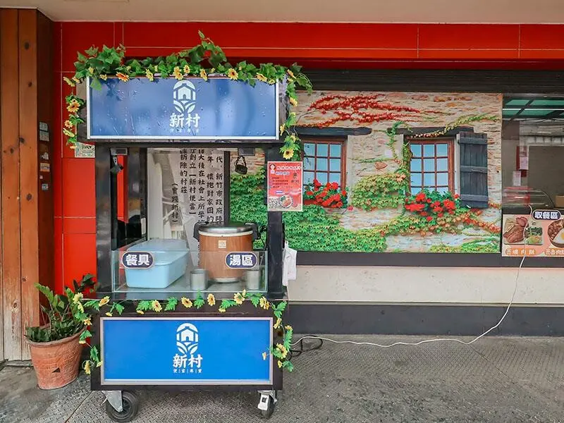 進到店裡,點餐很簡單,直接到櫃檯就可以點囉。新村便當中華店的餐飲主要是走懷舊的眷村味,不過店外面有一個打卡牆,它的風格卻是很異國風情喔,超有趣的!而且門口旁邊有個簡單的台車放著湯桶,用餐的朋友可以自己裝一碗熱湯帶回家喝,是不是很貼心!