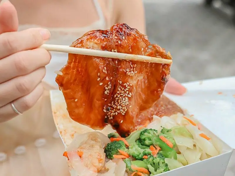 再來是他們家的蒲燒魚肚飯!一份$100元。我跟你說,它的好吃程度,根本可以說是蒲燒鰻魚的平替版了啦!醬燒的鯛魚肚,吃起來有夠鮮嫩多汁的。每一口咬下去,都能感受到魚肚本身的油脂,跟甜甜的醬汁完美的融合在一起。雖然它不是高級的鰻魚,但是這個蒲燒魚肚,口感真的超級細膩,足以暫時滿足你對鰻魚飯的渴望了。就算你是在公司用餐,吃著吃著,感覺都能瞬間被帶到某個日式小居酒屋的氛圍裡去了!