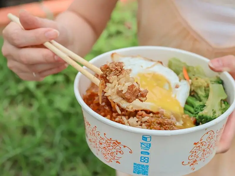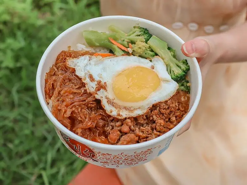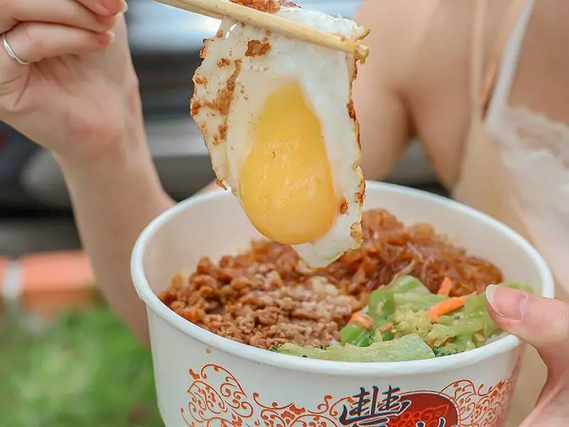 它的滷汁香氣很濃郁。雖然名字是魯肉飯,但我覺得它的口感更偏向肉燥啦。滷得很入味,米飯吸飽了滷汁,吃起來更涮嘴。肉燥的口感偏軟綿,如果再多一點點嚼勁,我覺得會更完美啦。這個便當,很適合在忙碌的午餐時間,想快速補充能量的時候來一份。而且它還附上一顆半熟的荷包蛋喔!把蛋黃跟米飯攪拌在一起吃,真的超讚的啦!