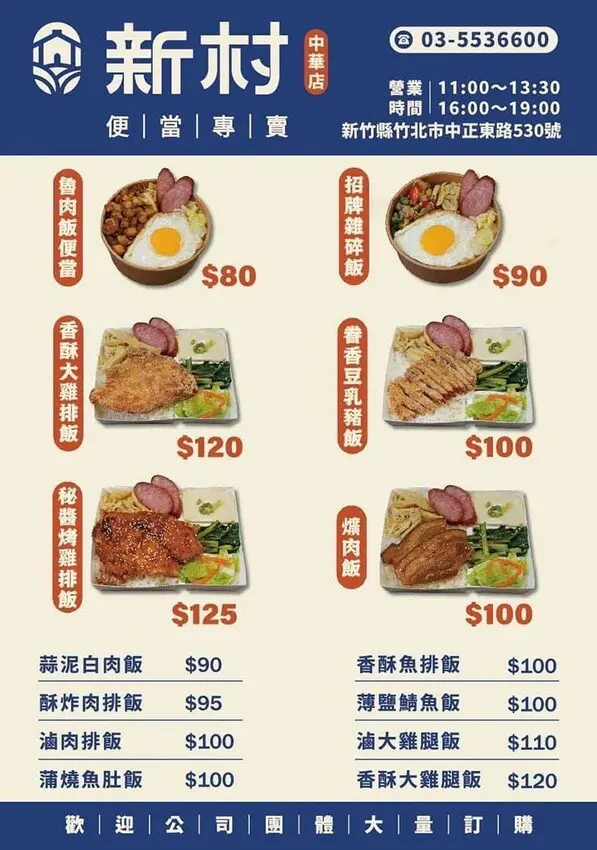 不過呢,每一份便當都有包含營養均衡的配菜,所以不用擔心啦!新村便當有很多道台式眷村風味的便當可以選,為每個來用餐的朋友提供了很多樣化的口味選擇。餐點的價格都很合理啦,加上份量又紮實,還有配菜,CP值真的相當不錯!