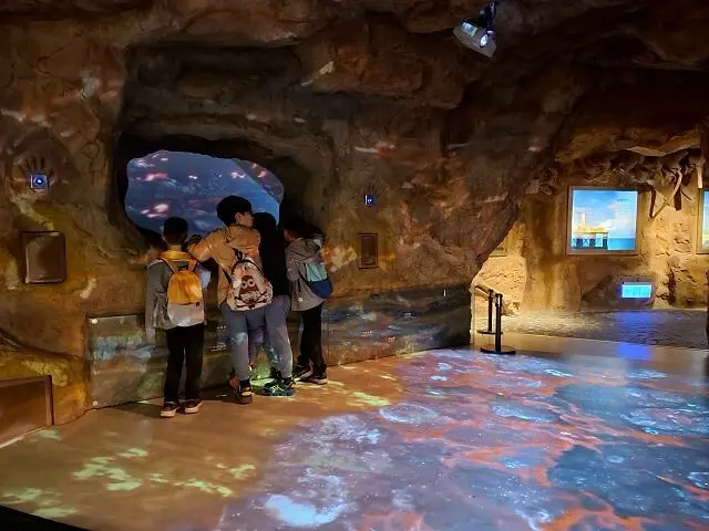 四樓展區是「能源與電子產業展示區」,裝潢設計採岩洞造型,讓大家有身歷其境探險的感覺。