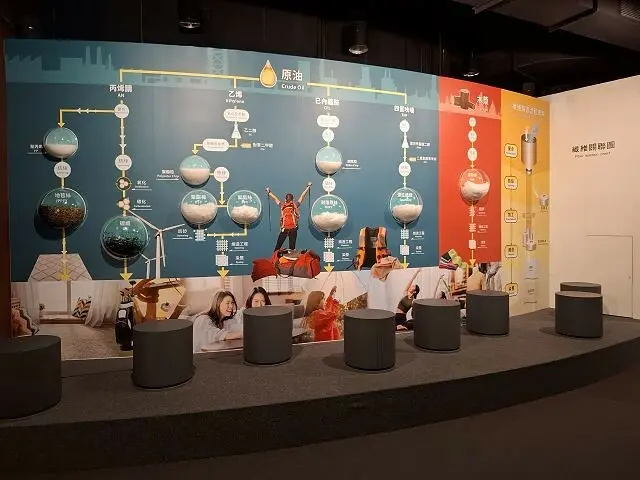 三樓則是「塑膠與纖維產業展示區」,展示著台塑企業塑膠與纖維產業在生活各層面的應用,還有早期的生產設備實體在這裡也看得到。