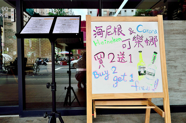 門口擺了菜單跟小白板,小白板不時會更新優惠的活動