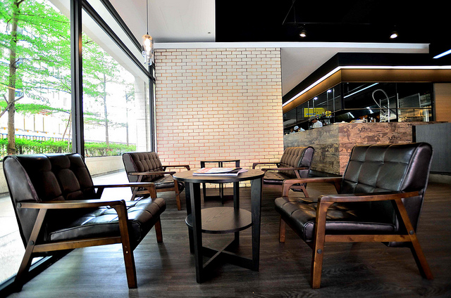 復古的皮沙發加上磚牆,給人一種放鬆悠閒的感覺