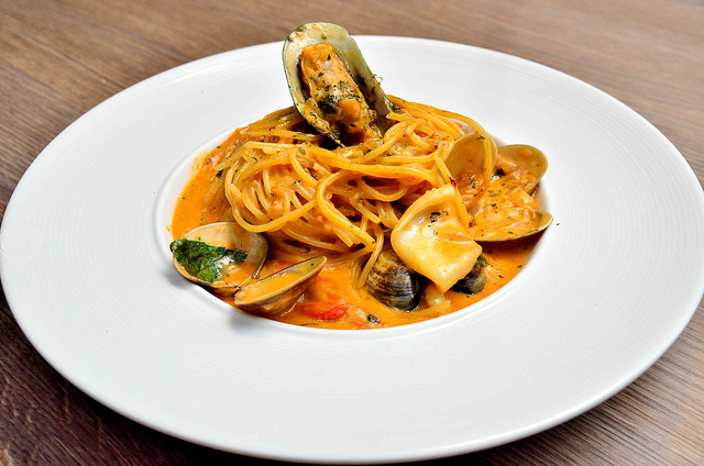 猛一看或許覺得這是西班牙海鮮燉飯的義大利麵版