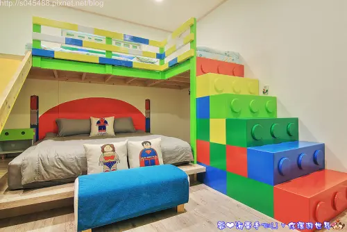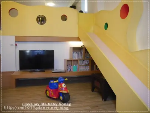 一個晚上不用看電視光是溜滑梯玩積木就飽了!