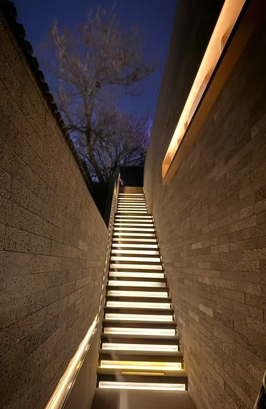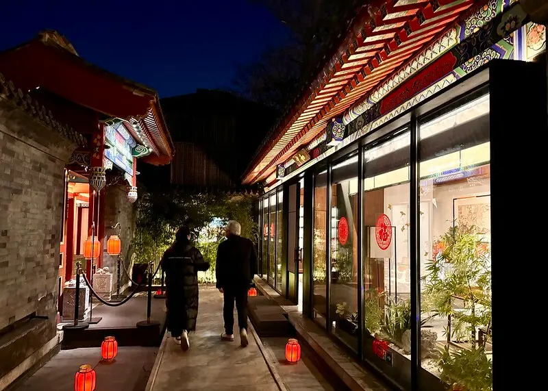 接著服務人員帶我們穿過一條蠻有氛圍的石梯往上,這是一片在傳統四合院之上改建加蓋的露天天台(冬天沒有開放)。