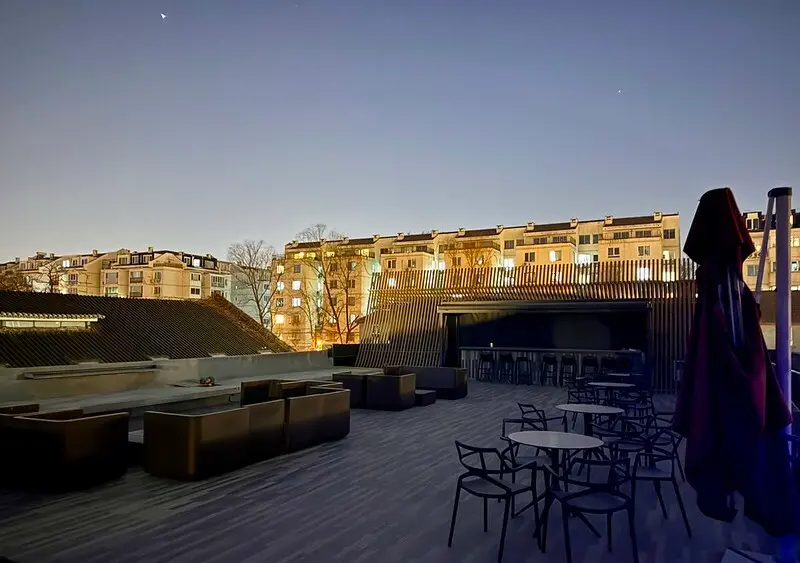 天台上可以依高欣賞北京胡同的夜景甚是迷人,夏日時分不少客人會先在這喝杯酒,一邊欣賞北京日落的晨昏交替之美。