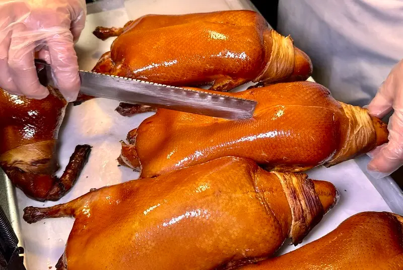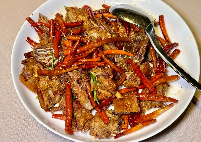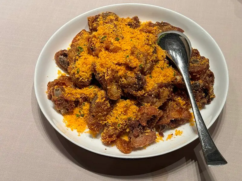 這邊其實是只有三吃,但因為我們叫了五隻烤鴨就兩種口味都嚐試了一下。椒鹽酥鴨,整體來說就是台灣的鹽酥鴨加了辣的作法,但這辣我很愛,很涮嘴,配桌上的黃酒正好。