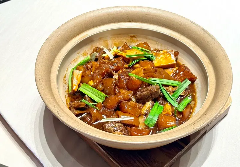 陳皮牛腩煲,燒牛腩的中段加入陳皮一起慢火輕燒,讓陳皮的甘甜緩緩滲入牛腩,起鍋前加入花雕,入口滋味有層有次,八成是我吃過最美味的牛牛腩煲,牛腩軟嫩多汁(纏)不說,連蘿蔔都入味到不行。