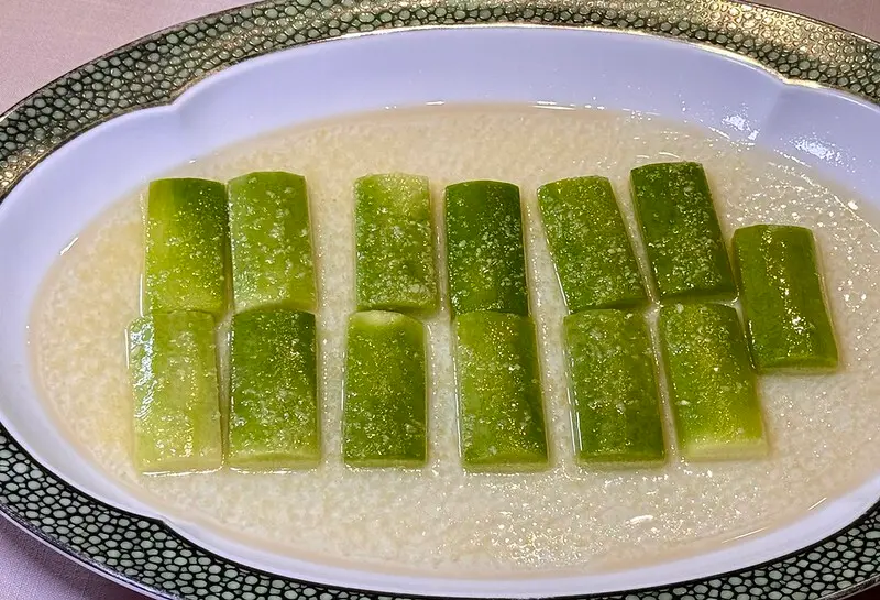 季節時蔬。這段相對沒啥好談的,在中國通常在主菜後會再上一些簡單的清炒,讓沒吃飽的客人配飯。