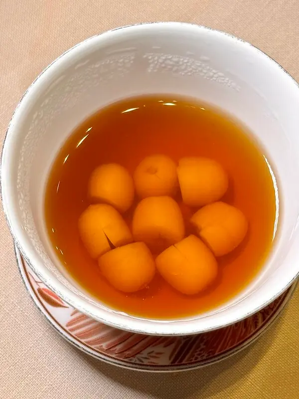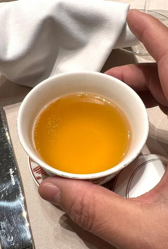 本來以為是茶,但喝了一口其實是清澄的雞湯,尾韻帶點油甜和淡淡的膠質感。