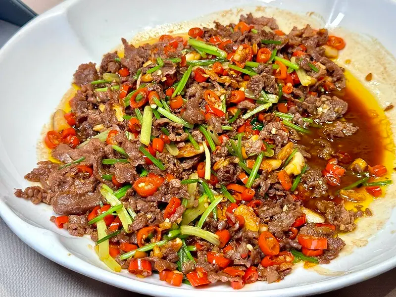 辣炒牛肉。感覺也是湖南菜系,而且這一盤的辣更直接帶勁,本來吃到這已經飽到沒啥吃欲了,但這一口又讓我的味覺徹底醒過來,真的也太辣了吧....,但偏偏又很想再來一口,而且得配飯。