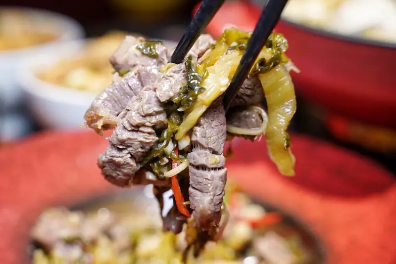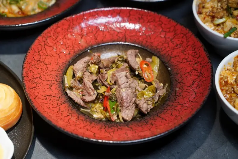這道「熗炒酸菜牛菲力」酸勁十足,非常開胃!菲力牛肉吃起來肉汁香甜又很嫩口,搭配滿滿酸菜,不自覺會想來碗白飯配!
