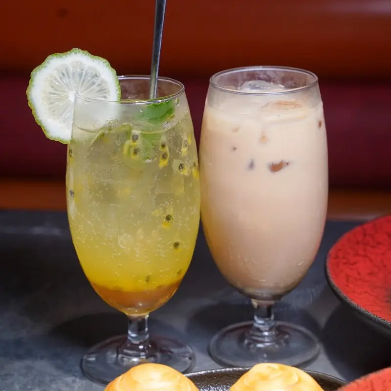 飲料「江魚美奶茶」喝起來絲滑濃順,甜度也很剛好,真的挺順口好喝的。「荔枝百香氣泡飲」絕對是解膩的好朋友,真的非常清爽好喝~