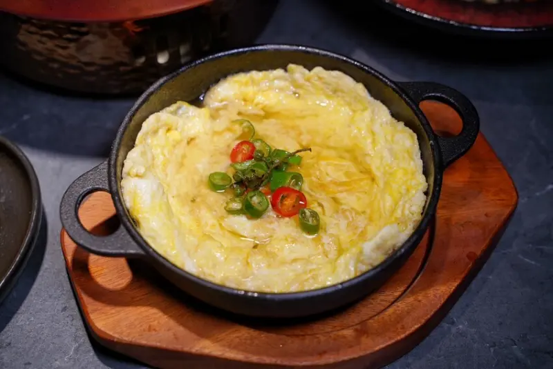 熱菜很推薦選這道「花椒鐵鍋蛋」,用平鐵鍋裝的金黃色澤烘蛋,口感非常軟嫩,吸飽特調椒麻醬汁,口味比其他川菜更清爽一些,份量也很有誠意。