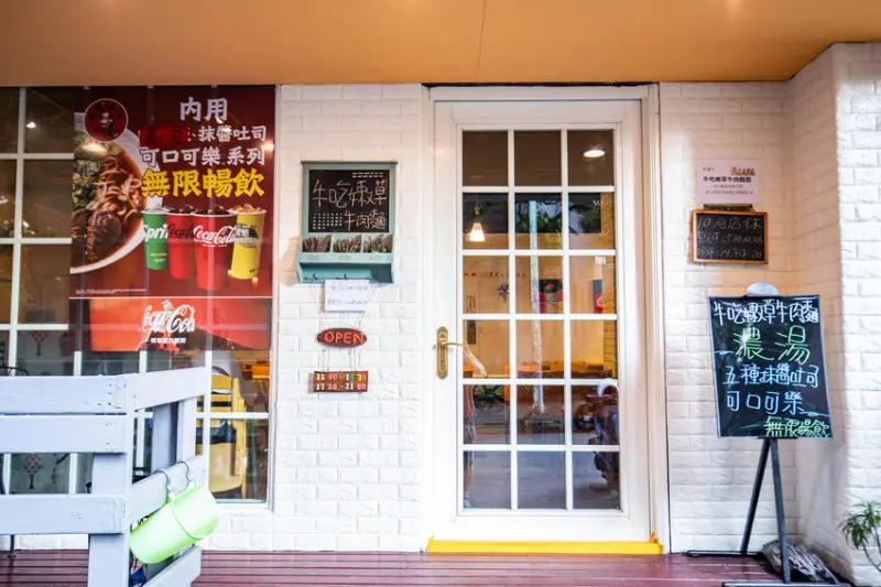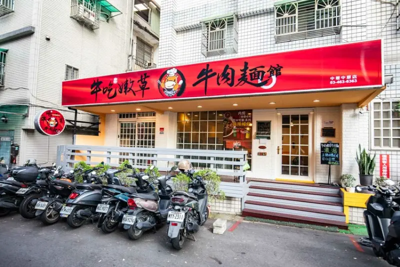 牛吃嫩草牛肉麵館鄰近中原大學、中原夜市,附近有很多收費停車場可以利用,雖然位在巷弄內,但還蠻多學生會來這邊吃的,然後還有牛肉麵愛好者會特別跑來吃,甚至給予中壢前三名牛肉麵的超高評價!內用有飲料跟五種抹醬土司外加濃湯喝到飽,在學區總是要多一點額外的附加價值