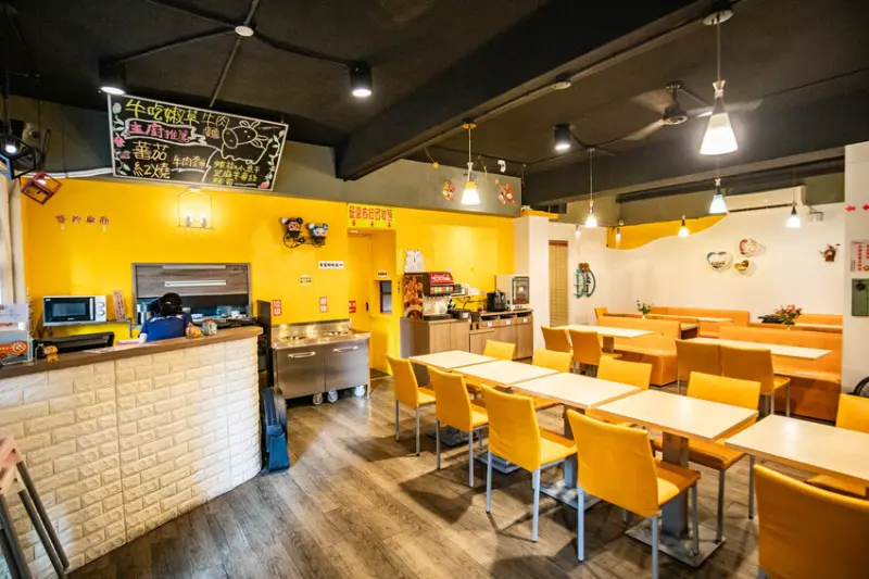 走進「牛吃嫩草牛肉麵館」,你會覺得用餐環境蠻寬敞舒適的。 亮黃色的裝潢感覺很活潑,有些座位還是大大的沙發座椅,很適合家庭一起來用餐。
