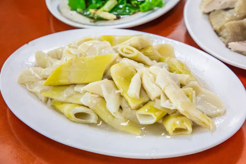 我這次點了一雞兩吃,半隻香菇雞搭上半隻白斬雞,另外還點了炸溪蝦、滷桂竹筍跟炒山蘇。加上白飯可以吃到飽,這樣一餐吃下來總共是2150元,說真的,這樣點滿滿,價格算是非常便宜啦。