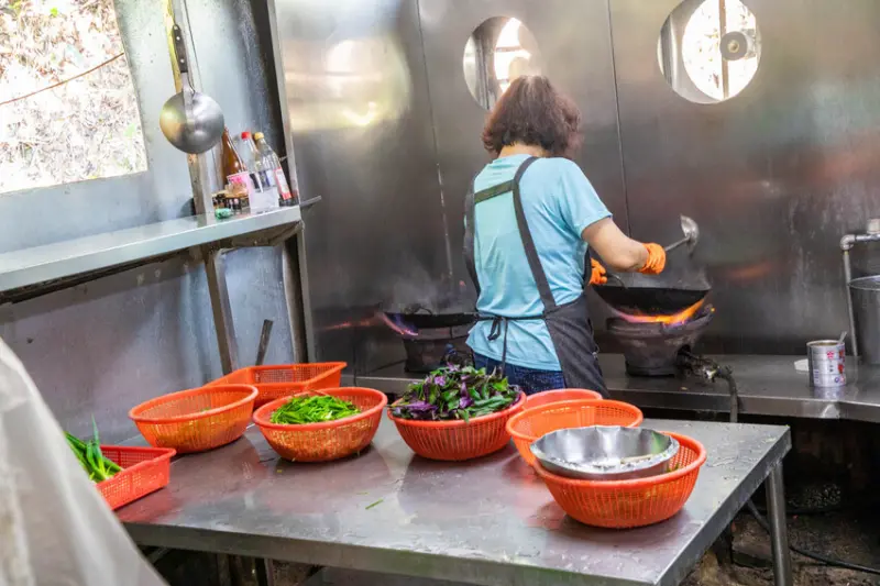 雖然說它開在深山裡,但安安土雞城的用餐環境其實蠻乾淨整潔的啦。店裡的阿姨們都超級親切的,用餐空間是走那種比較原始開放的風格,沒有裝冷氣,不過因為在山區,其實也不太熱,就是偶爾會有點小黑蚊出沒,記得稍微注意一下防蚊就是了。