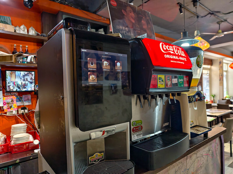 除了主食之外,喝的部分也完全沒問題,這裡有喝到飽的汽水飲料,還有咖啡機呢,真的超划算的。更猛的是,他們的自助吧還有麻辣鴨血跟豆腐耶,這竟然是隨便你吃的嗎,實在太佛心了。玉米湯也是自助吧的一員,裡面的玉米都超大顆的,用料感覺很實在,這兩個也相當棒。