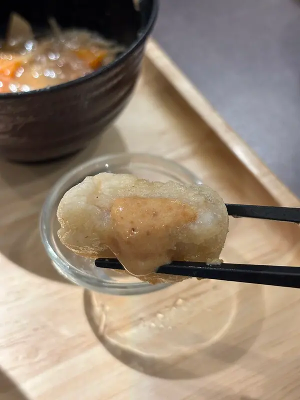 每份定食都會附上藜麥毛豆、醃漬蘿蔔、味噌湯