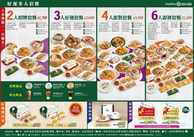 ▲添好運推出了多種多人套餐,非常適合聚餐或家庭聚會。套餐內容豐富多樣,從2人到6人都有對應的套餐選擇,讓您可以輕鬆挑選適合的餐點。