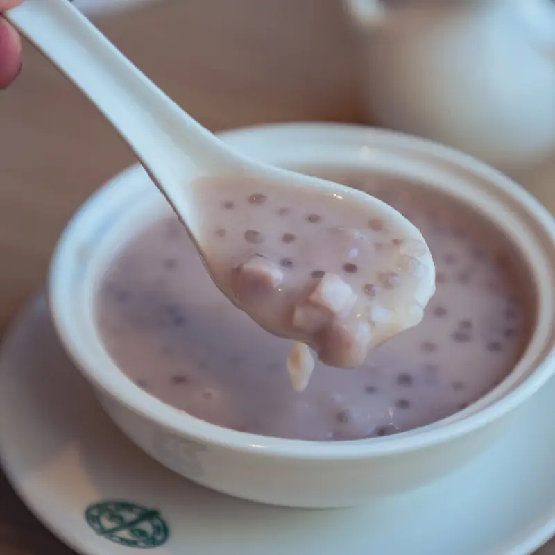 這道甜點是用綿密的芋頭搭配小小的西米露,味道香甜濃郁,層次感也很豐富。熱熱的喝起來感覺好溫暖,特別適合天氣比較冷的時候來一碗,是超受歡迎的傳統廣式甜湯。