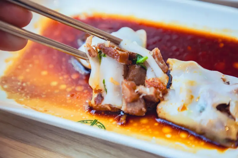 採用嫩滑的腸粉包裹著香甜的蜜汁叉燒,腸粉皮薄透亮,叉燒入味且口感豐富,是點心和肉類的完美結合。