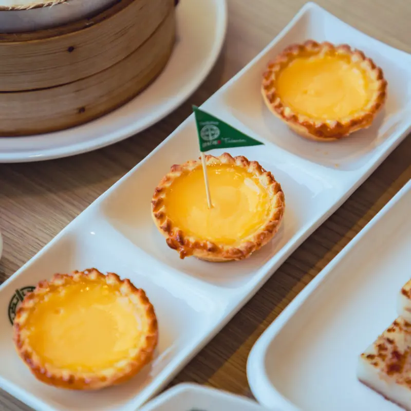 這個小小的蛋撻,外皮超酥脆,內餡的蛋奶味超濃郁,吃起來甜甜的但不會膩,入口就化開了,很多人來添好運都一定會點它。