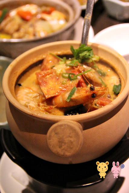 酸辣蝦湯:端上來的時候,我們都覺得也太可愛了吧~小小一甕的;因為是酸辣,所以湯喝起來就是有些酸酸的,不耐酸的人會喝不了一碗喔! 但是真的不錯喝!