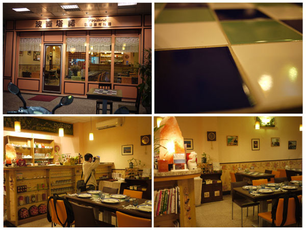 波西塔諾的位置,其實蠻偏僻的,一般的人都很少會特意跑來這邊吃,從裝潢面來看,真的很有鄉村風味的感覺,最酷的是,他們的餐桌竟然是用瓷磚來舖的耶!瞧瞧右上那張圖,有沒有像是在地板上的感覺呢?呵呵!超炫~