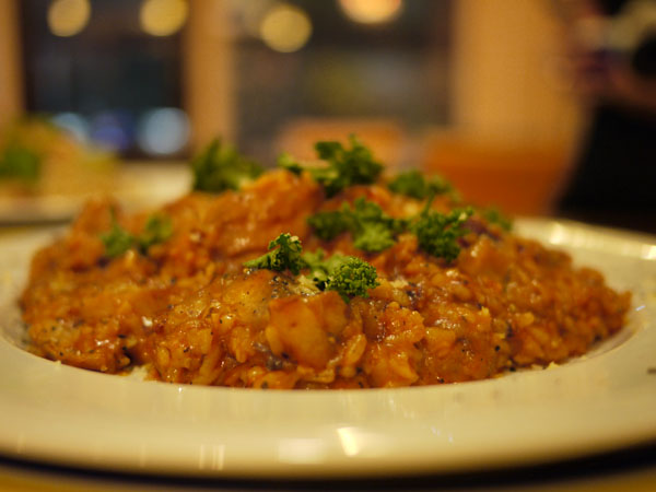 偏軟適合台灣人吃的燉飯口感,微酸茄汁配上不乾柴的雞肉,配上手工法式麵包,香濃夠味,不論單吃或搭配麵包都非常棒