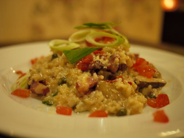 培根鞭出來的油香融合酸豆解膩酸嗆,吃下去不會有過多的培根油膩,酸豆在這燉飯中非常亮眼,搭配麵包混著吃也很棒。