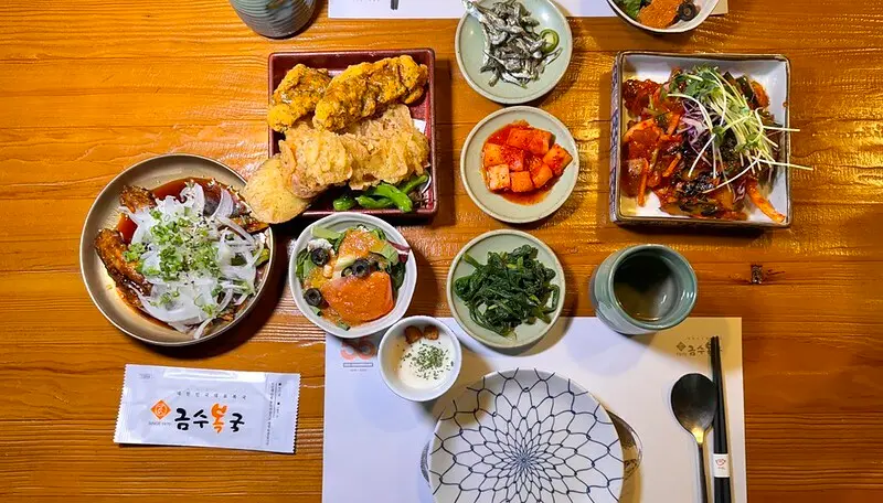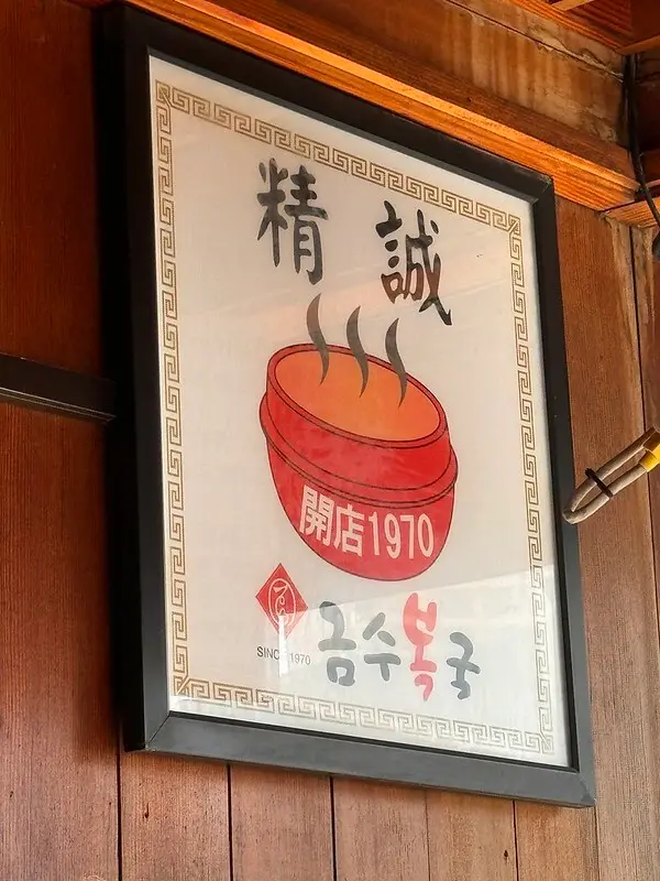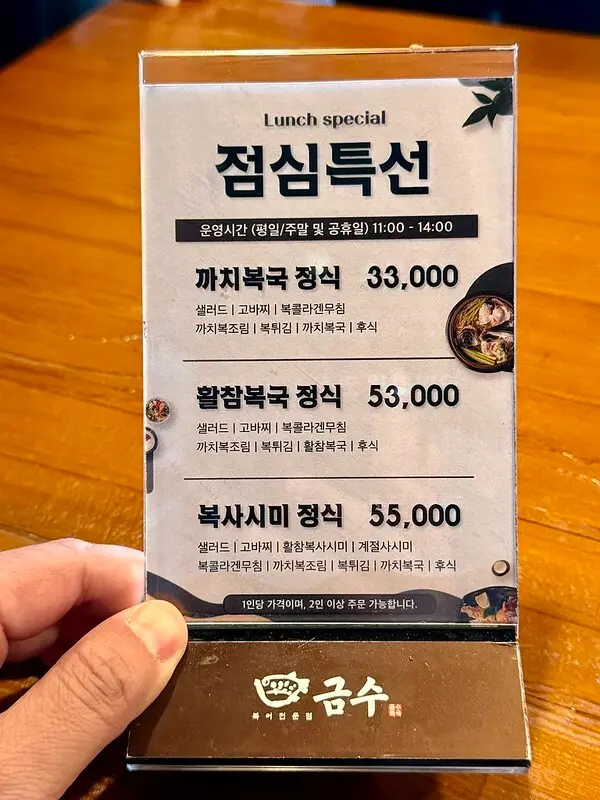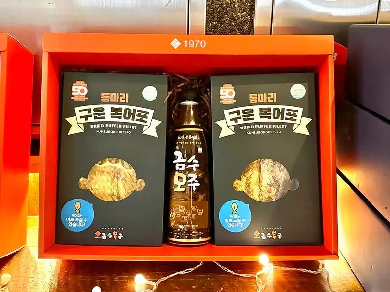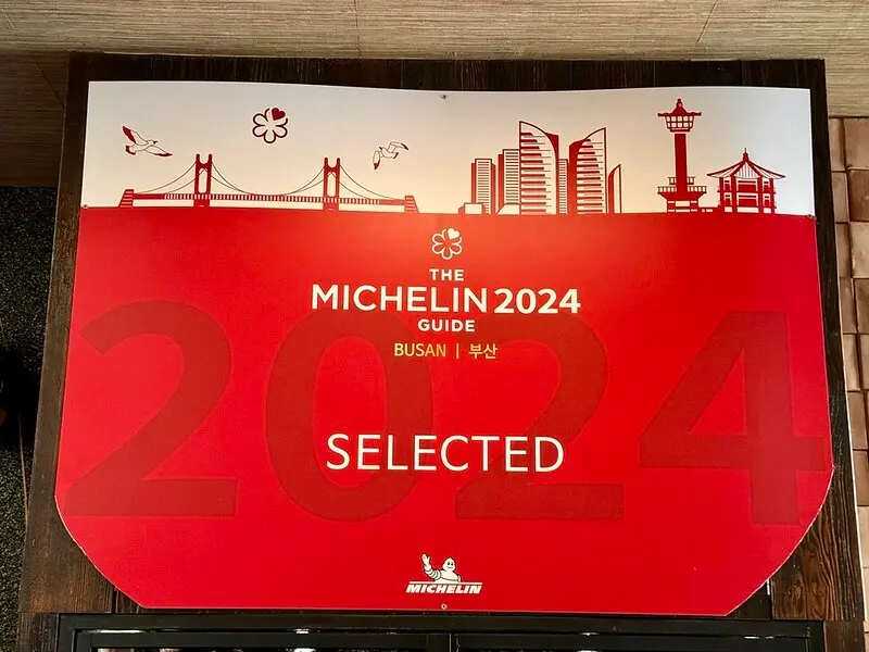門口寫著錦繡河豚금수복국創立於1970年,起家於釜山海雲台,也就是說這裡是本店起家厝。至於米其林,2024年釜山才首度有米其林,這家就立馬得到米其林推薦。順便說一下,釜山米其林只有一家星級(피오또)一星兼綠星。