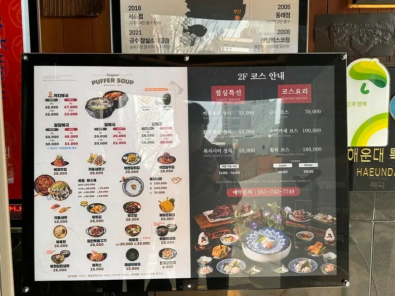 錦繡河豚금수복국位於釜山海雲台夜市(市場)周邊,離著名的海雲台沙攤、海雲台地鐵都是步行可達的距離。