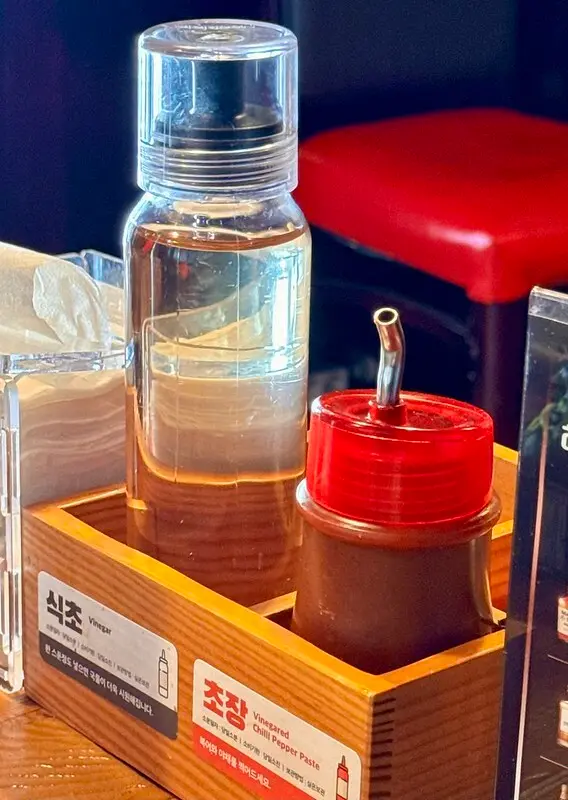 桌上有辣醬、麻油和醋,覺得不夠味可以自己調整。