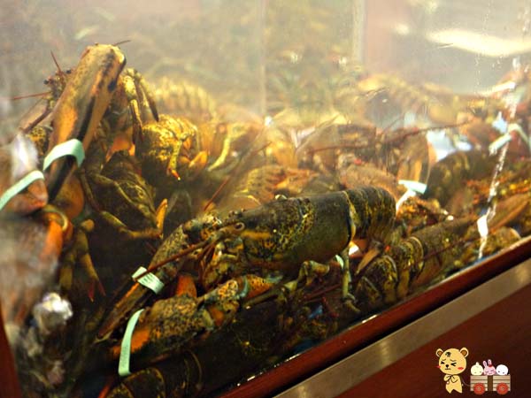 櫃台旁邊擺著許多放龍蝦的水族箱,每隻看起來都好肥沃(口水快流出來了)。
