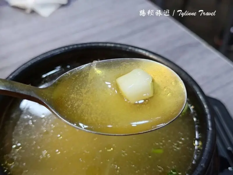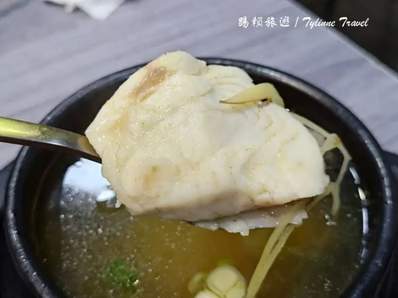 湯品的部分是「鯛魚片湯」,湯頭顏色看起來還滿清淡的,用湯匙一撈下面滿滿都是鯛魚片