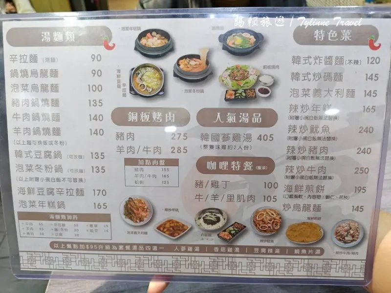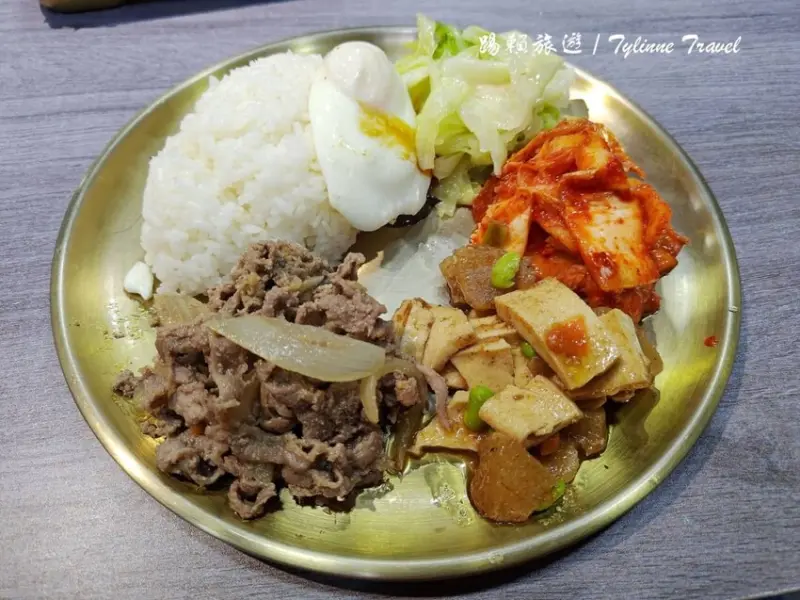 餐點的種類滿豐富的有韓式燒肉飯、韓式拌飯、鍋巴拌飯、湯麵和銅盤烤肉等,把在韓國可以吃到的種類和口味都呈現在這裡,另外還能加購超值特餐搭配湯品或是小菜拼盤