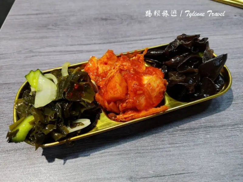 接著是兩份餐點搭配的套餐內容,首先是「韓式小菜三拼」,一共有九種涼拌小菜可以選擇三種,我們是選擇「海帶芽」、「韓式泡菜」和「黑木耳」